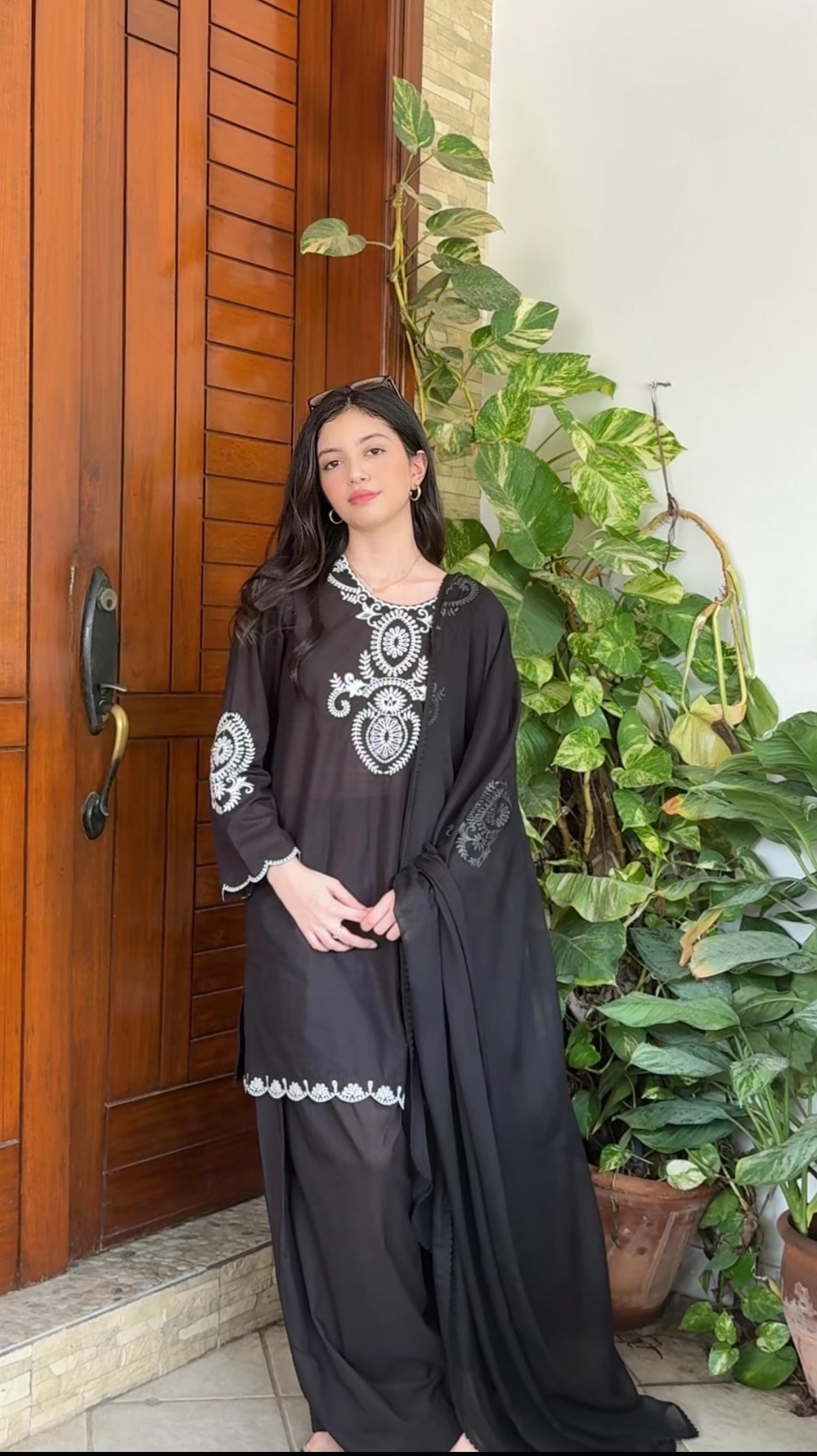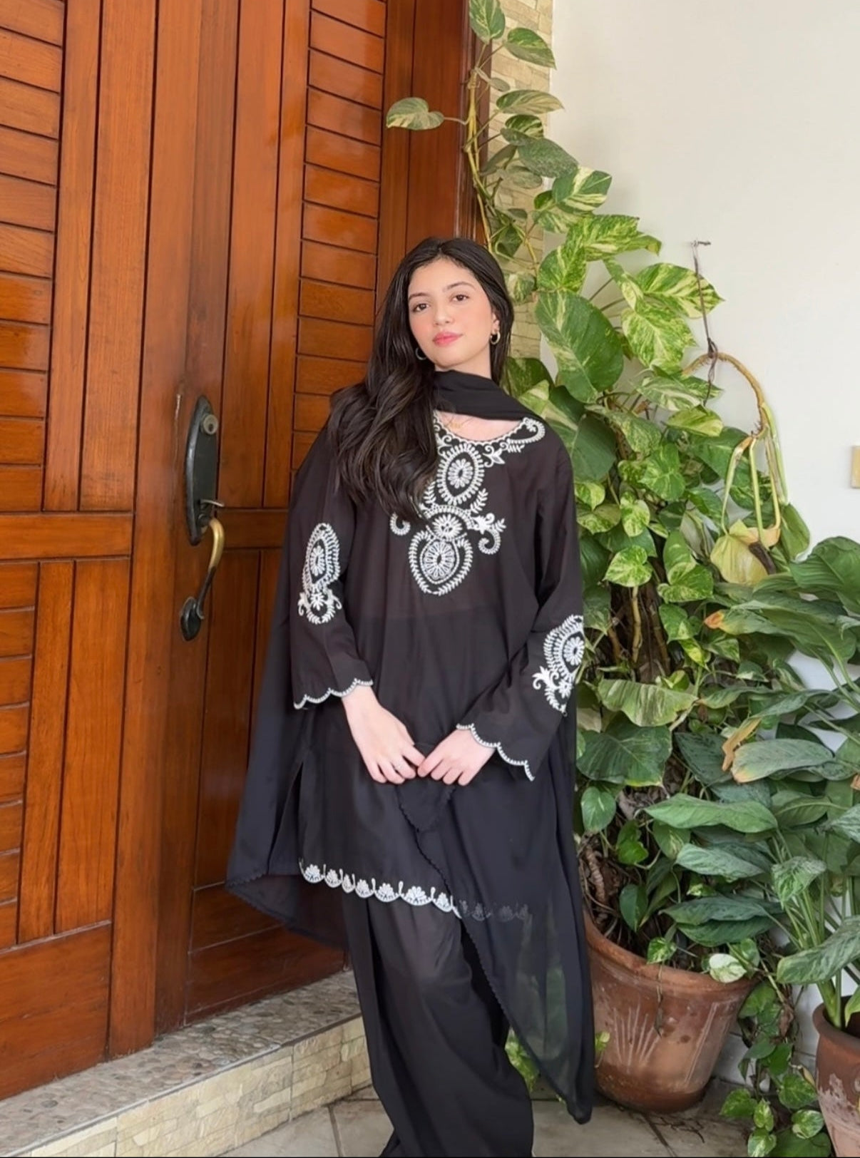 Traditional motifs reimagined in ivory on black.