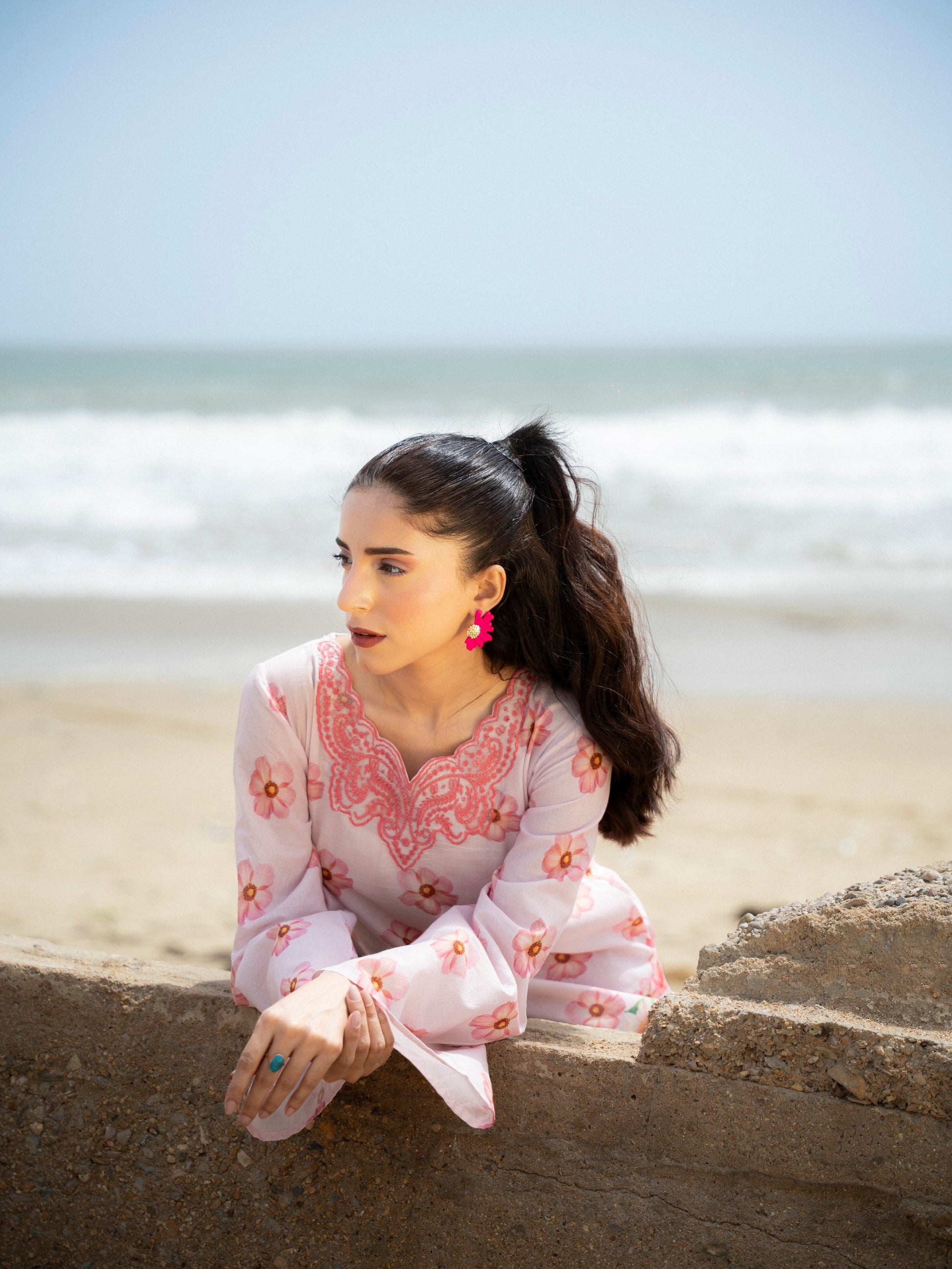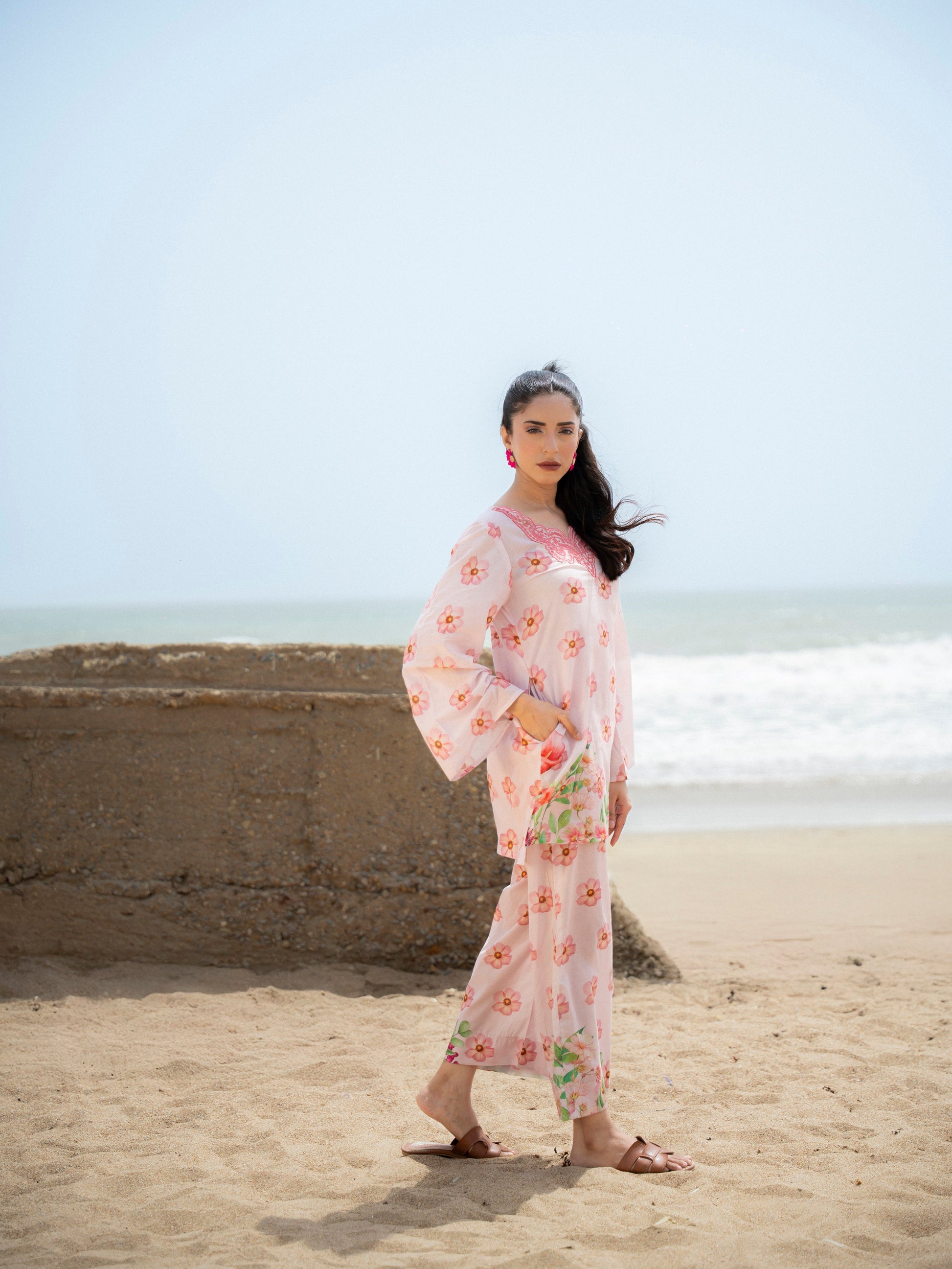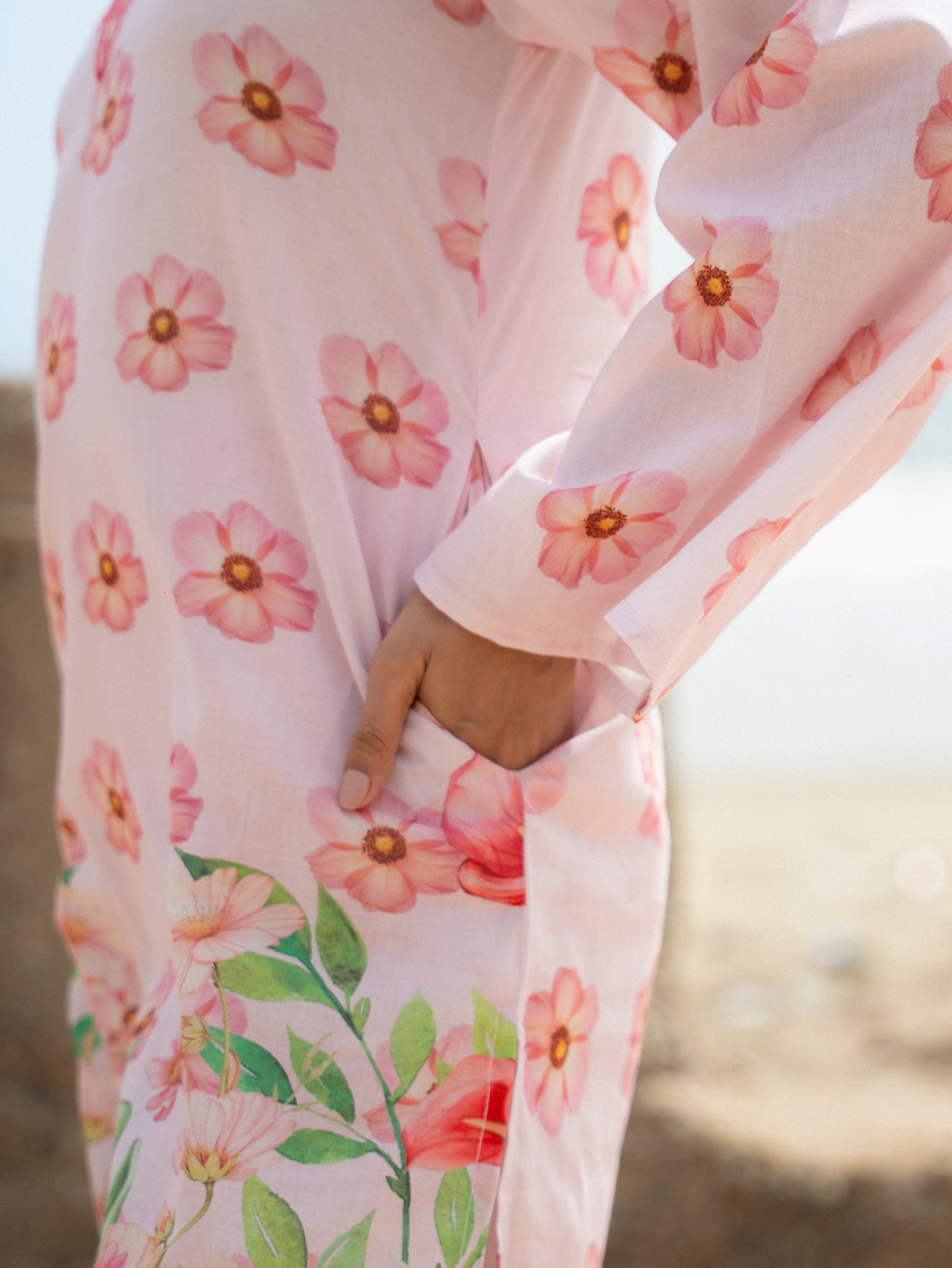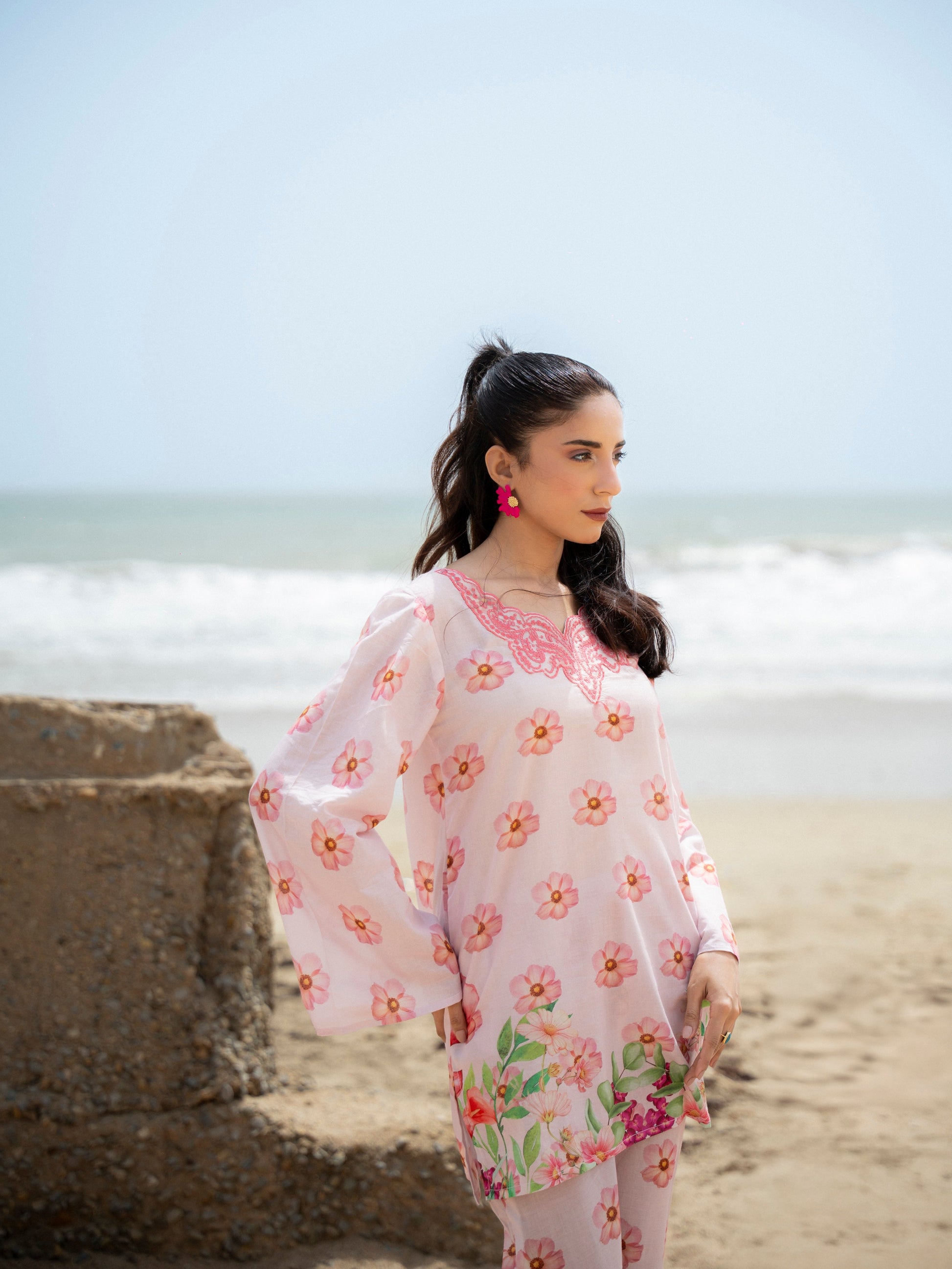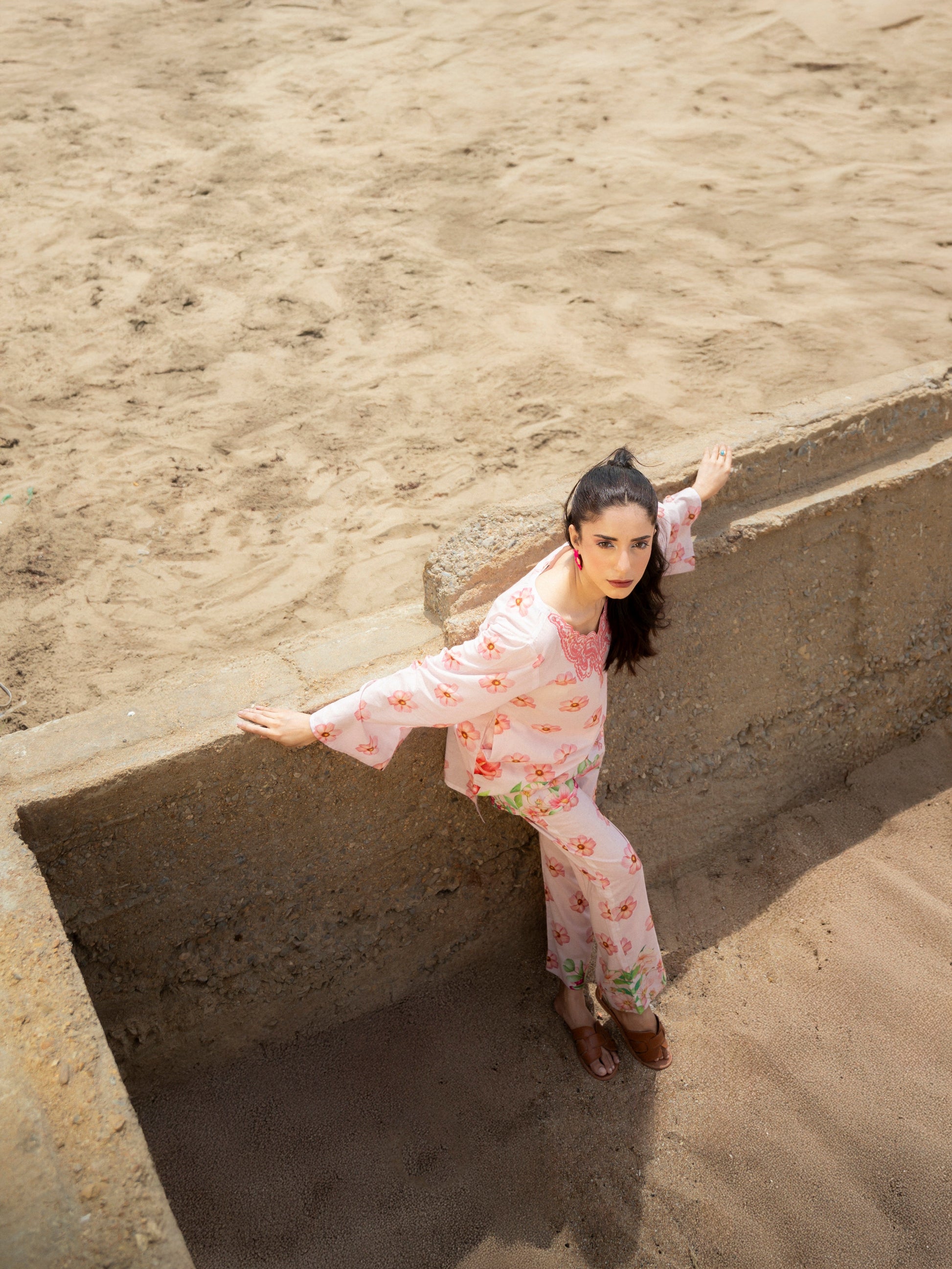 Blossa blooms with effortless grace—a playful print on a blush canvas that whispers of springtime delight. lightweight and airy, this two-piece set is made for sunny escapes and breezy mood boards.