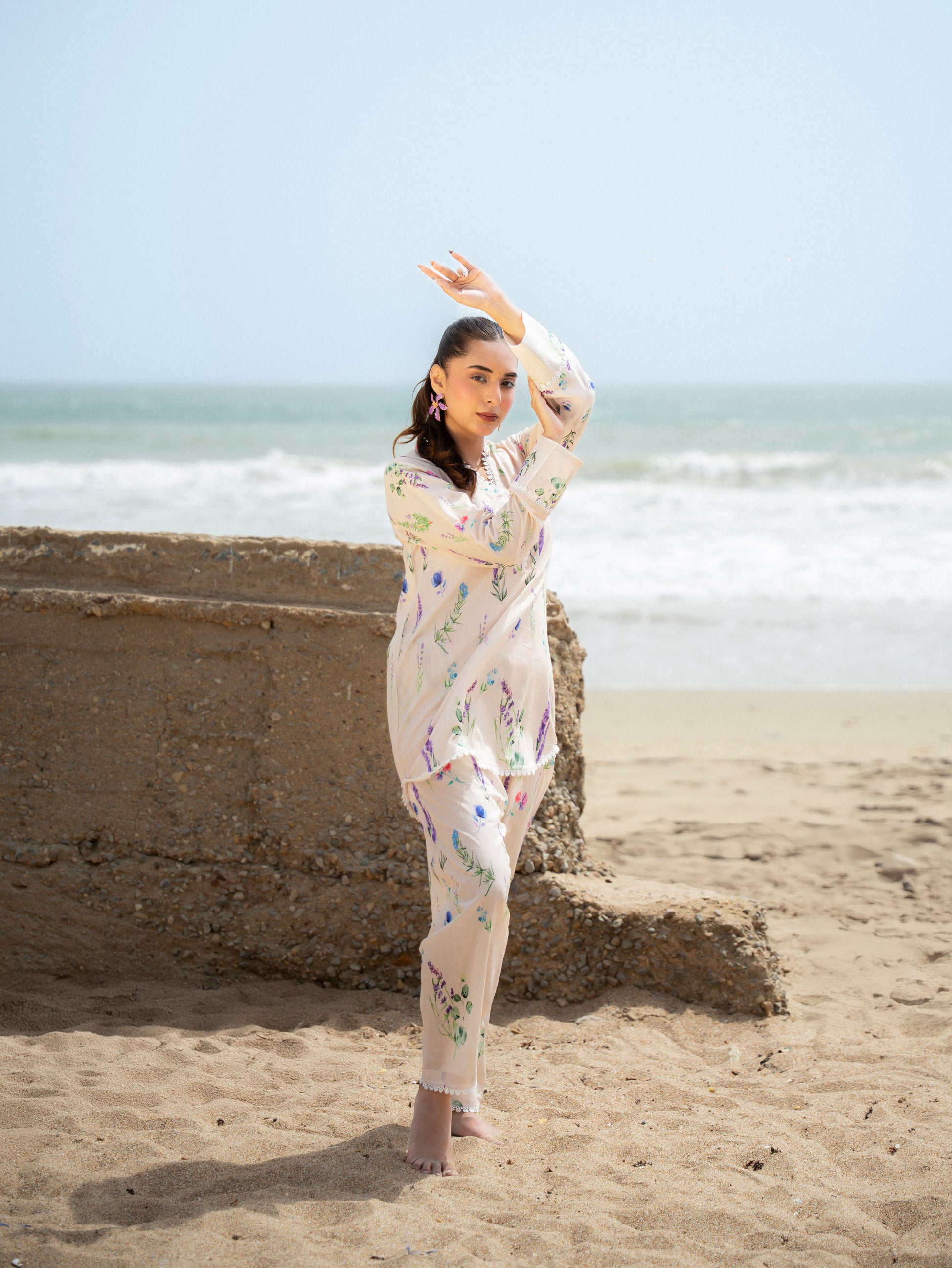Lavénia is a whisper of wildflowers on a creamy canvas—gentle, feminine, and utterly fresh. delicate botanical prints in shades of lavender and green bring an airy charm to this two-piece set, perfect for quiet morning walks and sun-kissed escapes.
