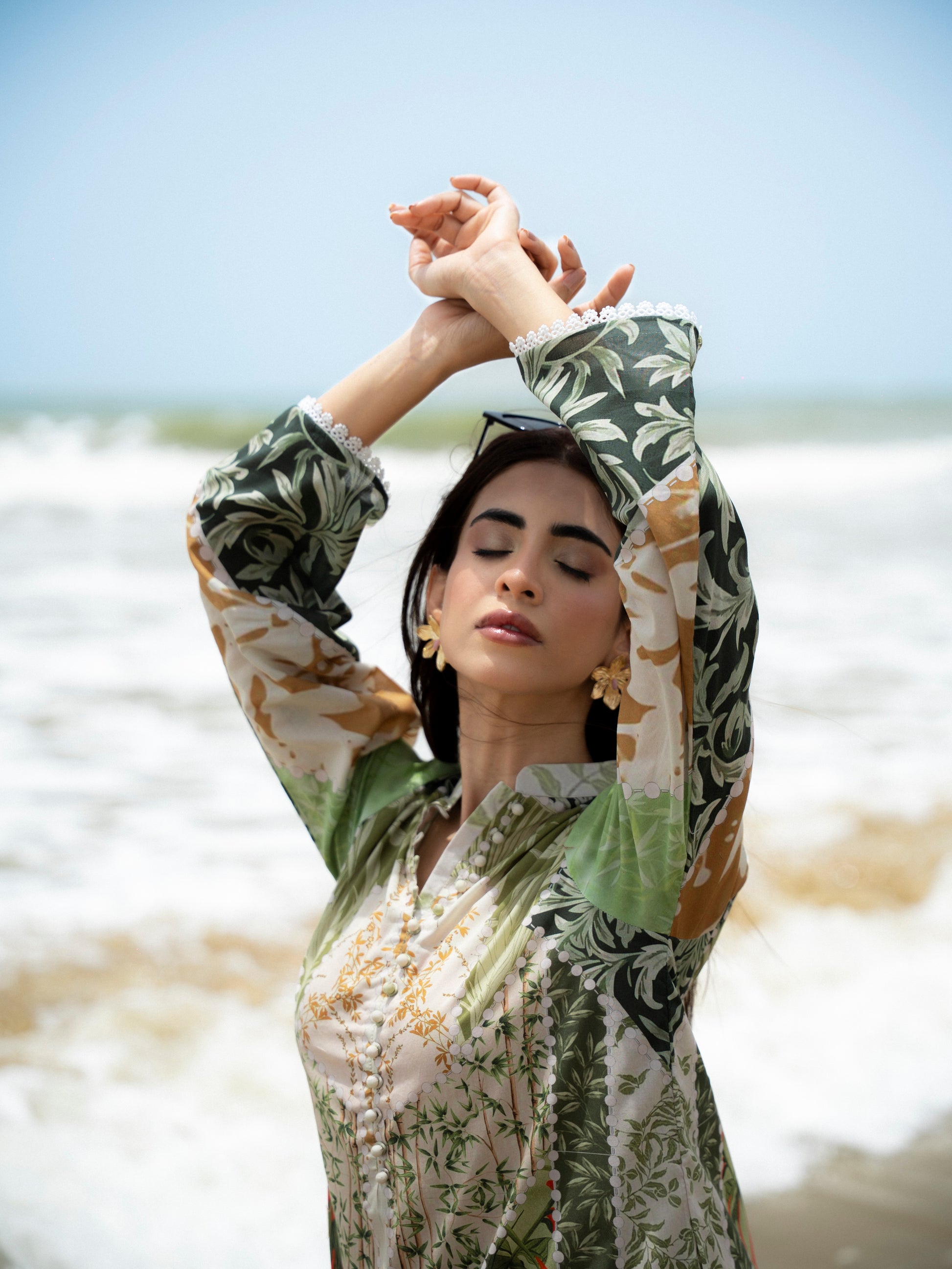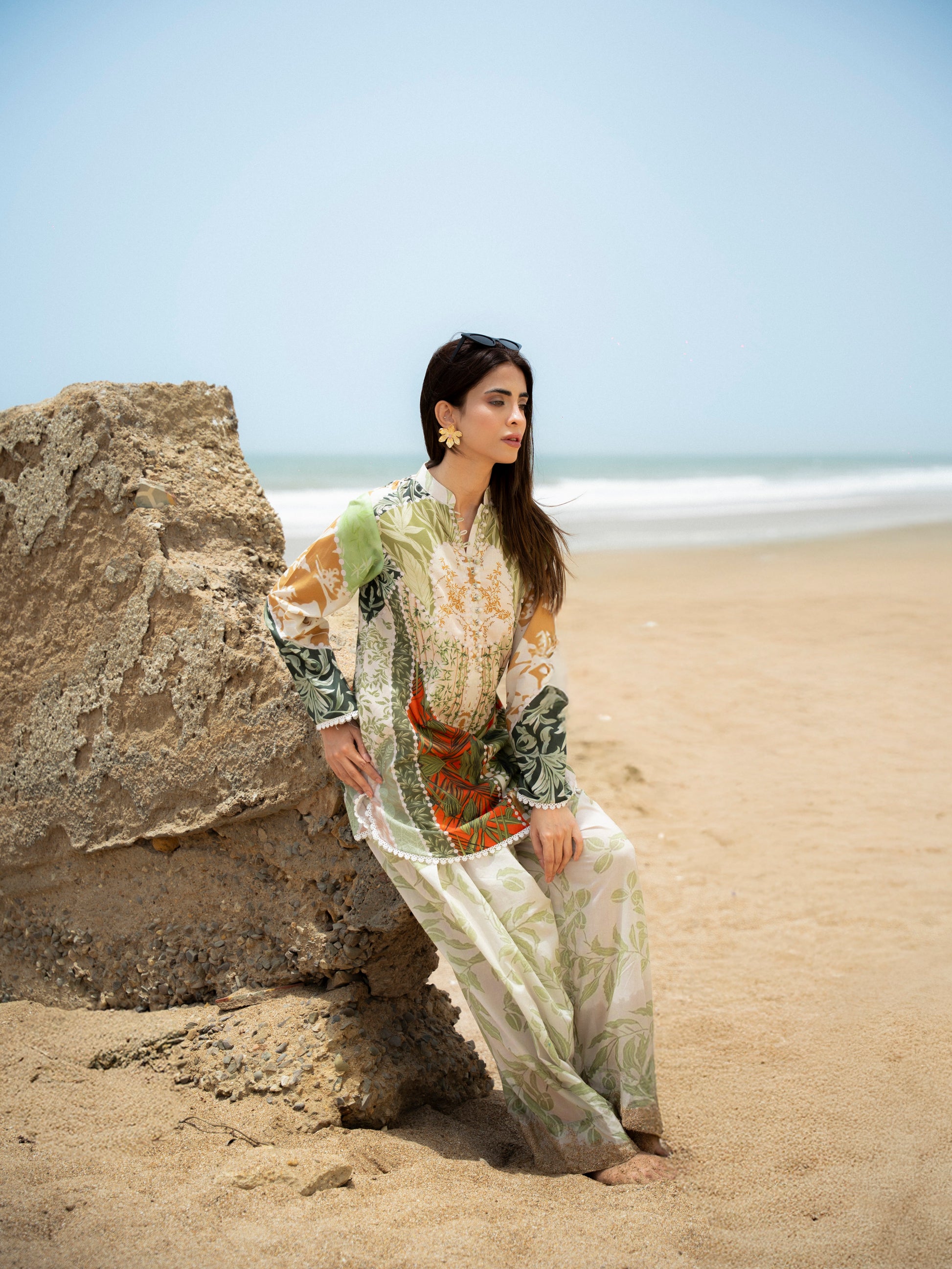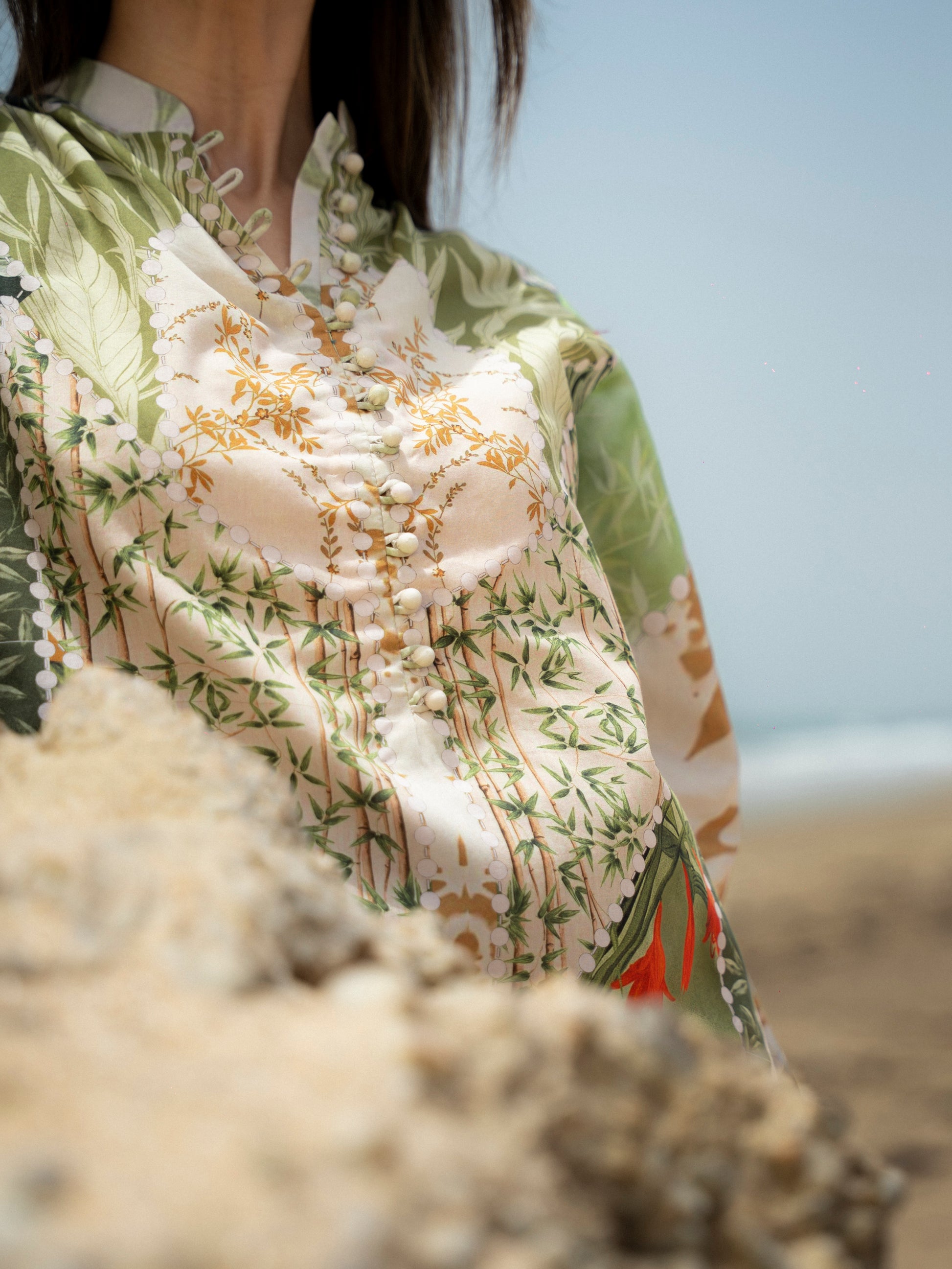 “lunara” is an ode to earth’s palette—with wisps of greenery, whispers of orange, and soft botanical prints that capture nature’s tranquility. a dreamy co-ordinate for breezy days, where style meets sereni