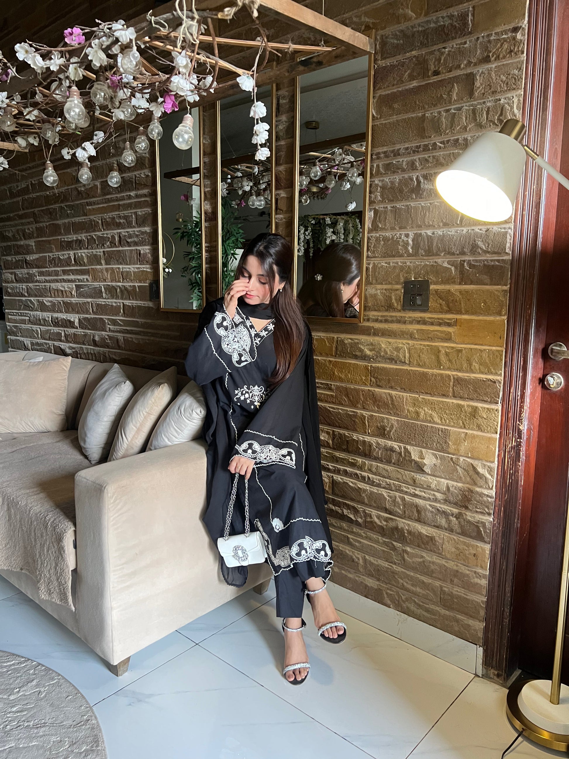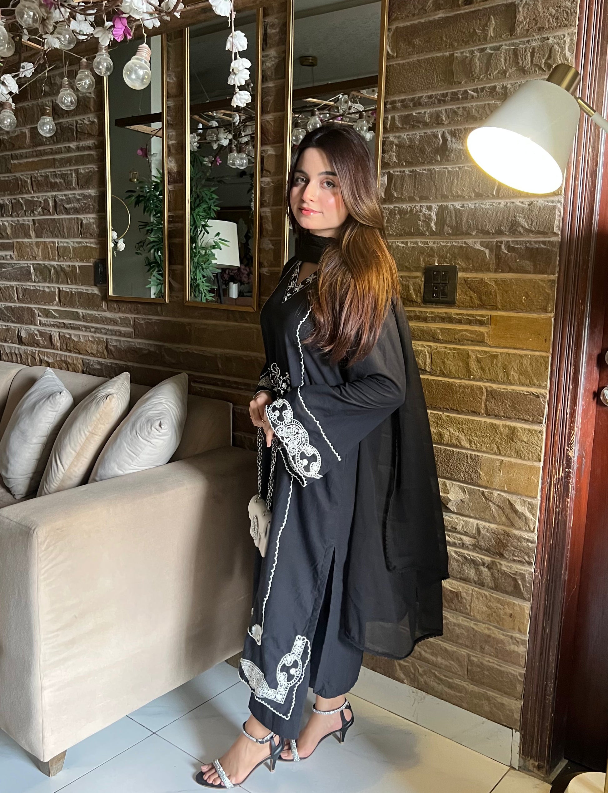 Classic black canvas adorned with fine ivory embroidery — this minimal yet striking ensemble balances timeless style with everyday wearability.