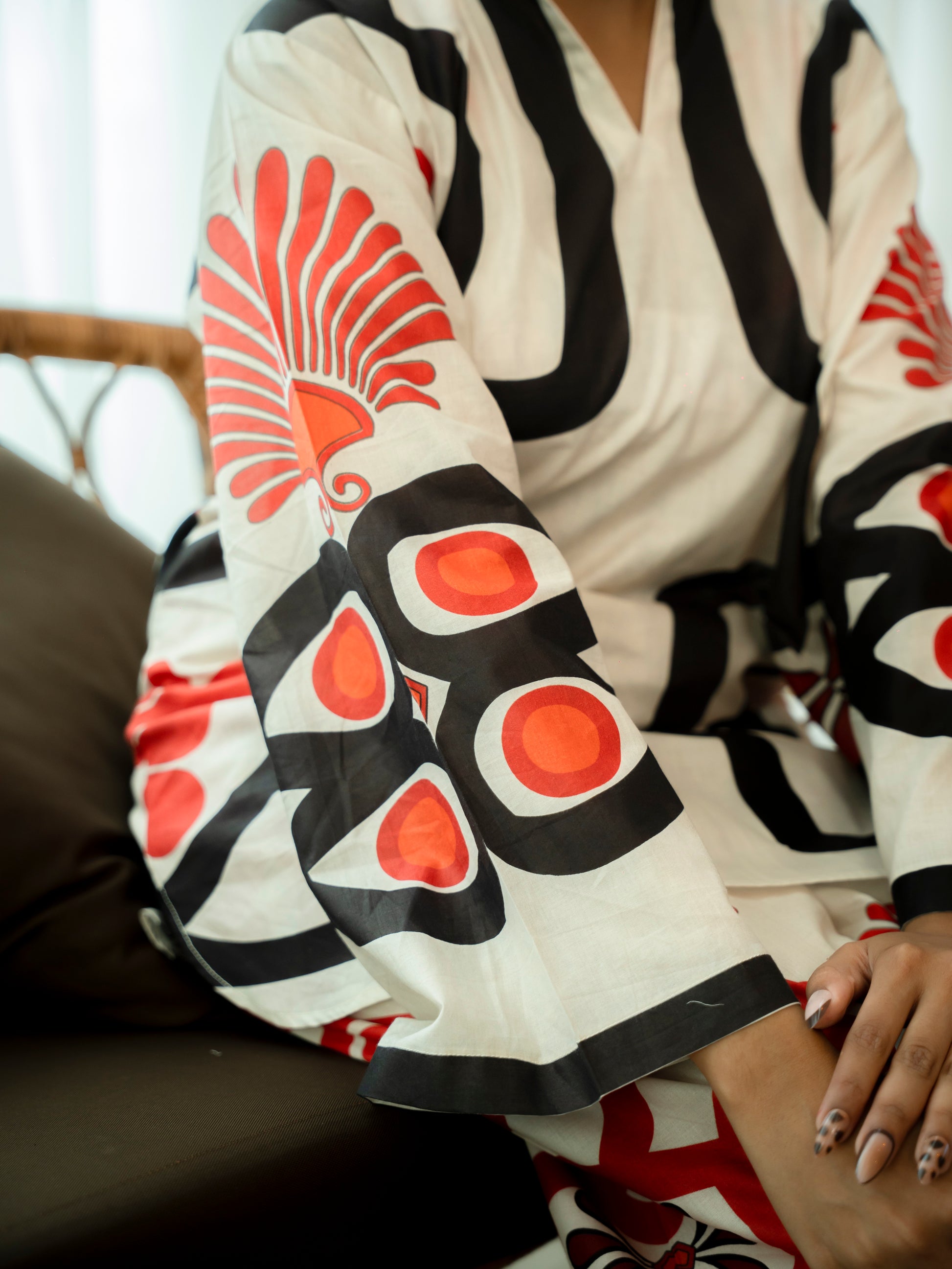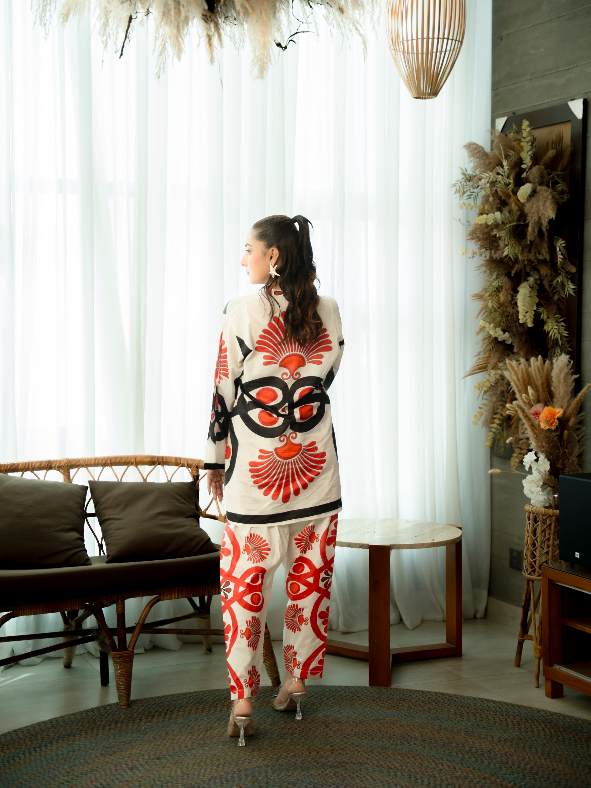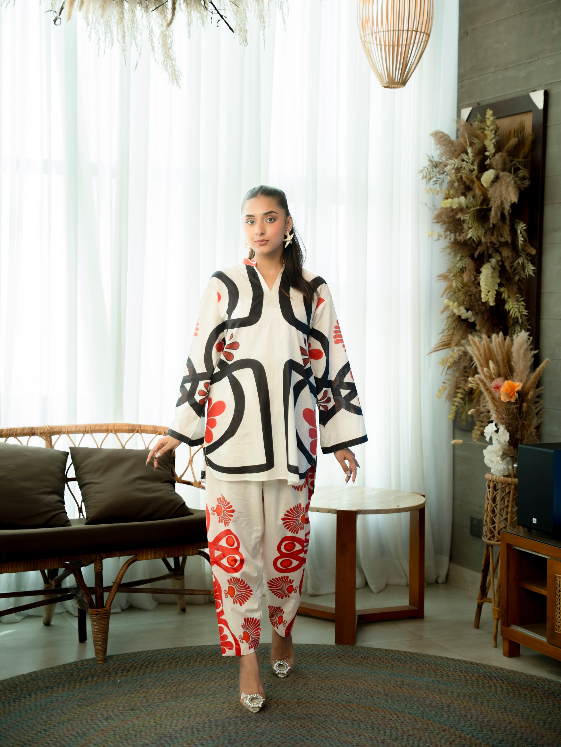 Ziva is a statement in structure—a bold play of shapes, color, and culture. graphic prints meet a relaxed silhouette, giving this two-piece set a global, gallery-worthy aesthetic.